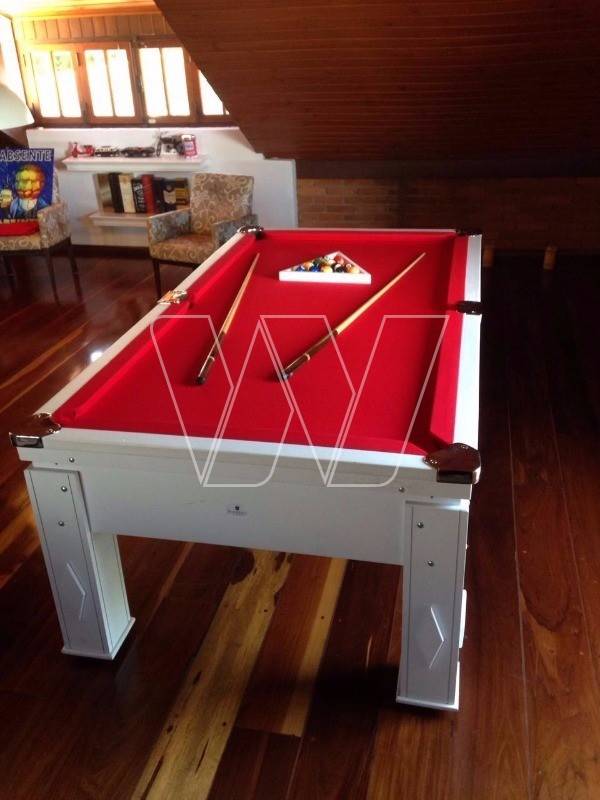 Área de lazer com piscina, churrasqueira, forno a lenha, campo de futebol, sala de jogos, sauna e banheiro auxiliar com hidromassagem.