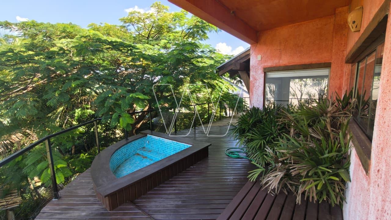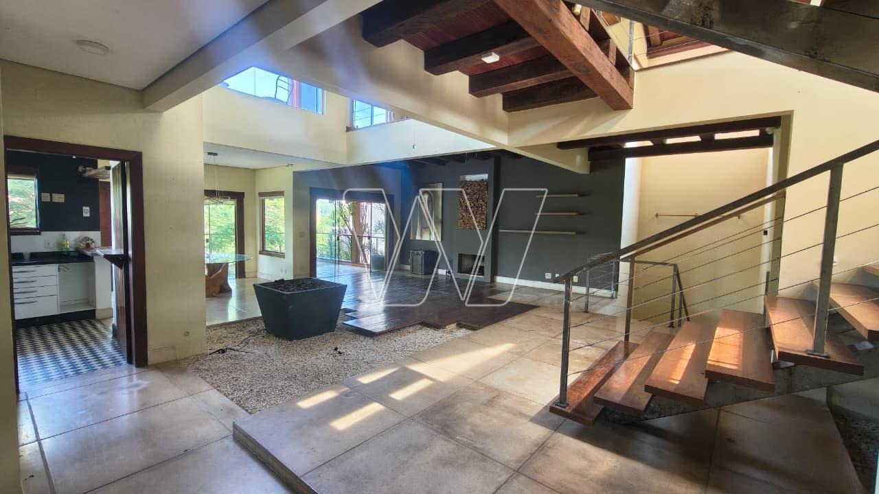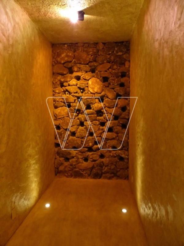 Amplo living para 3 ambientes, sala com lareira, sala de estar, jantar, lavabo, mezanino, sacada com vista para área de preservação, 3 suítes. Cozinha americana com armarios e equipada com forno, cooktop e coifa. Espaço gourmet com churrasqueira e forno de pizza, mini SPA com sauna e sala de ginástica, adega. Dependência para empregada, quarto de despejo. 3 vagas de garagem.