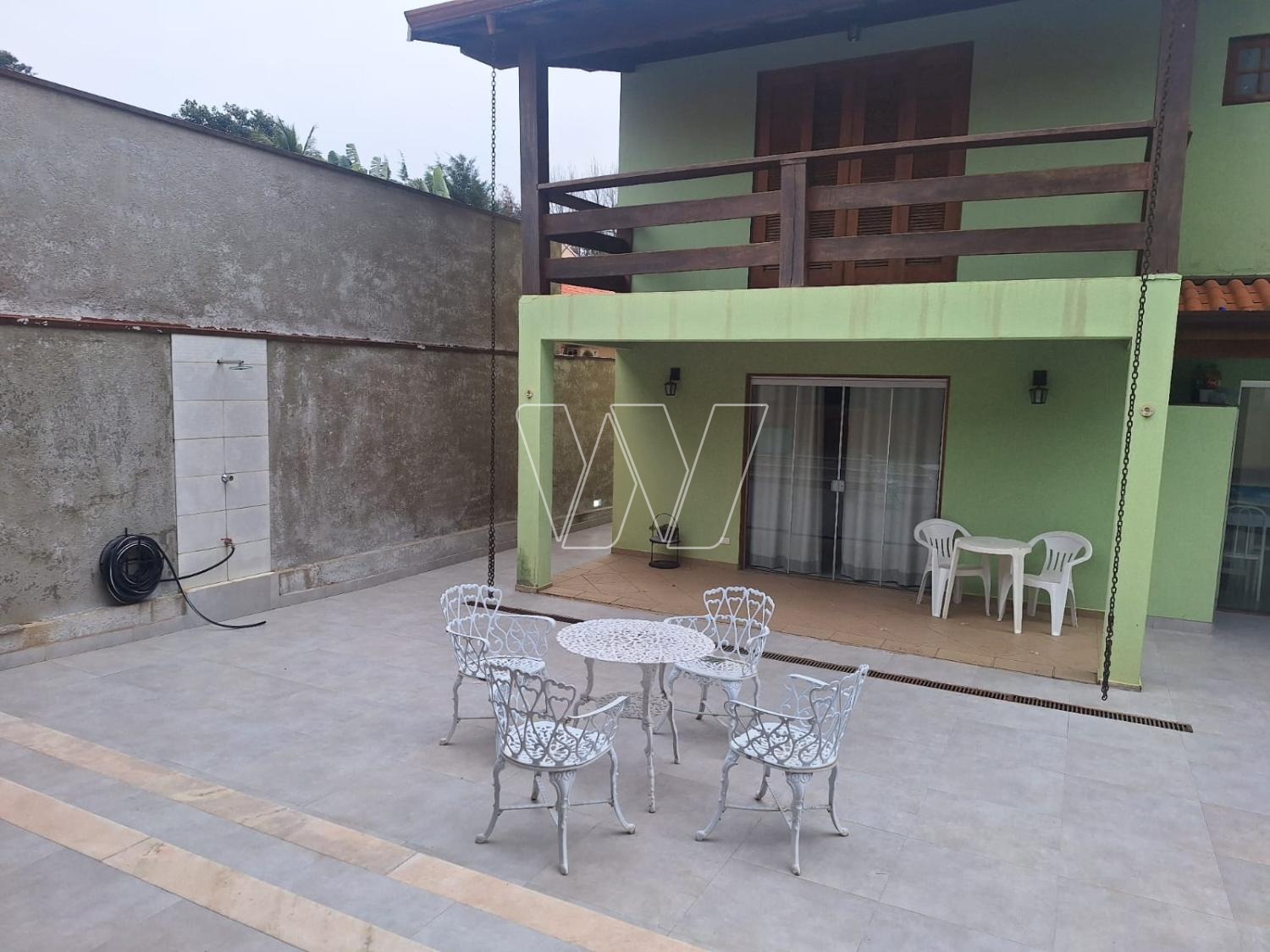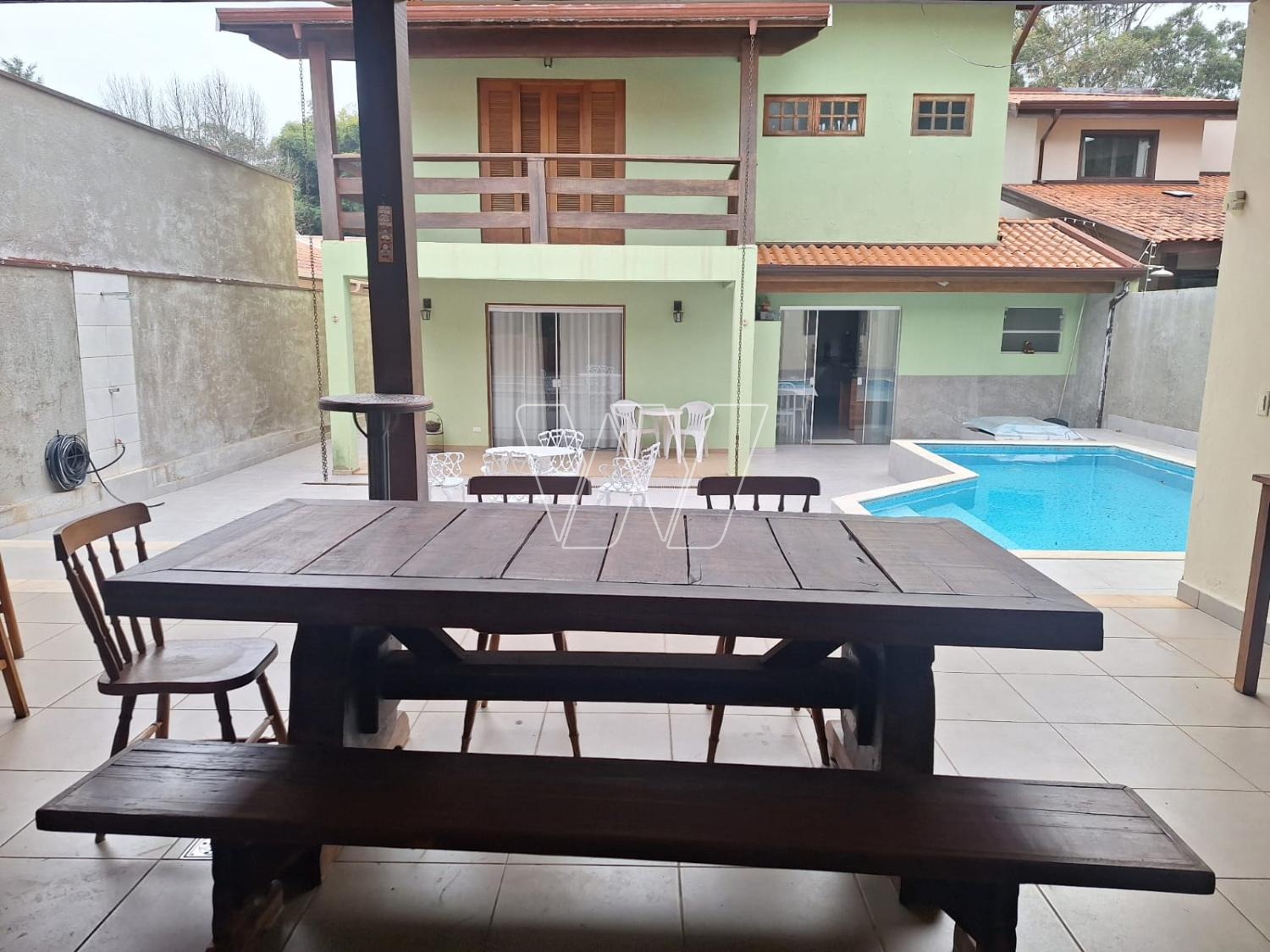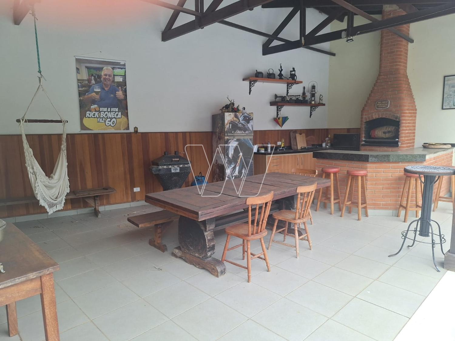 Areá externa: quintal com espaço gourmet: churrasqueira, forno e fogão a lenha, banheiro de apoio e piscina.