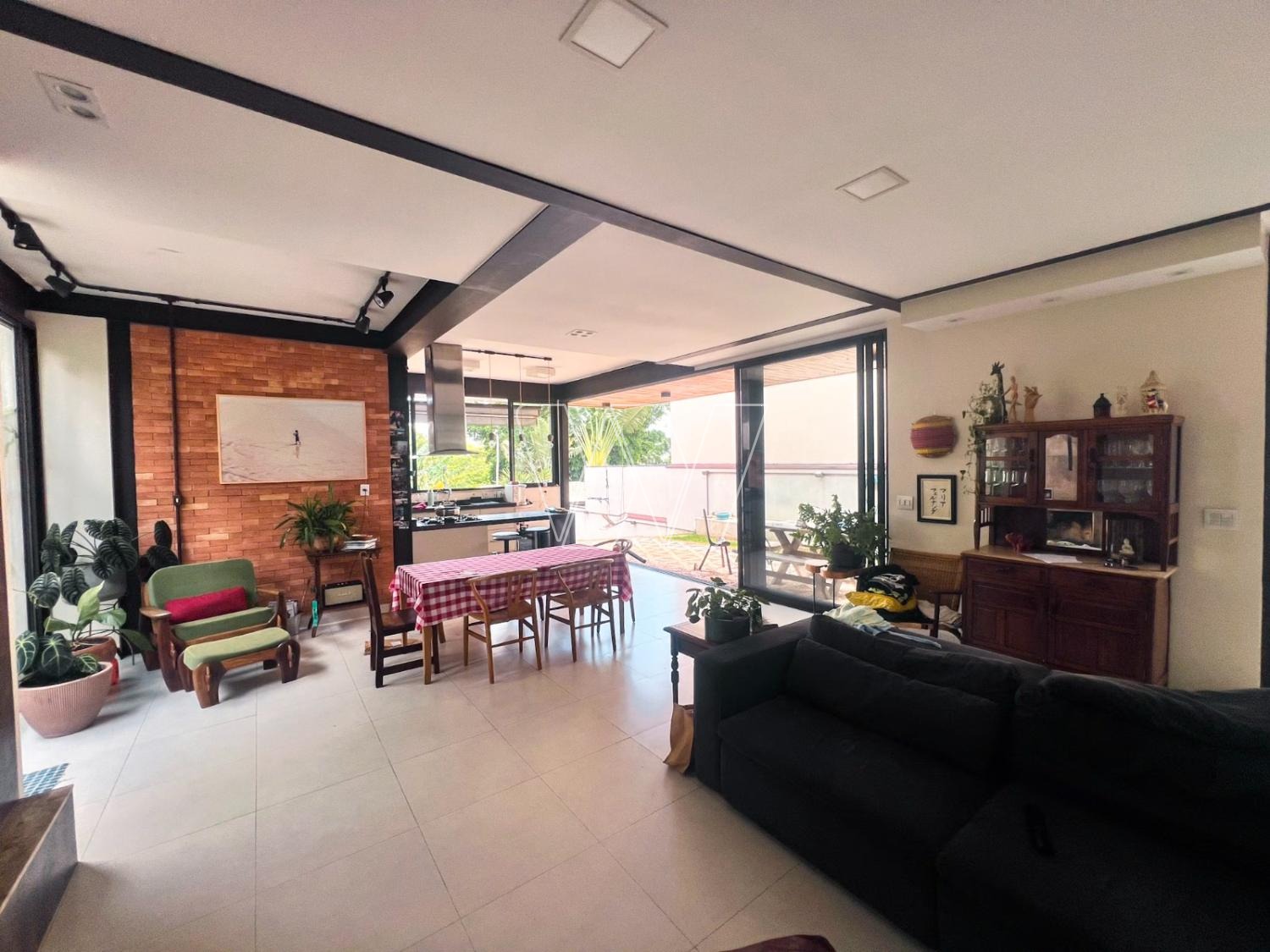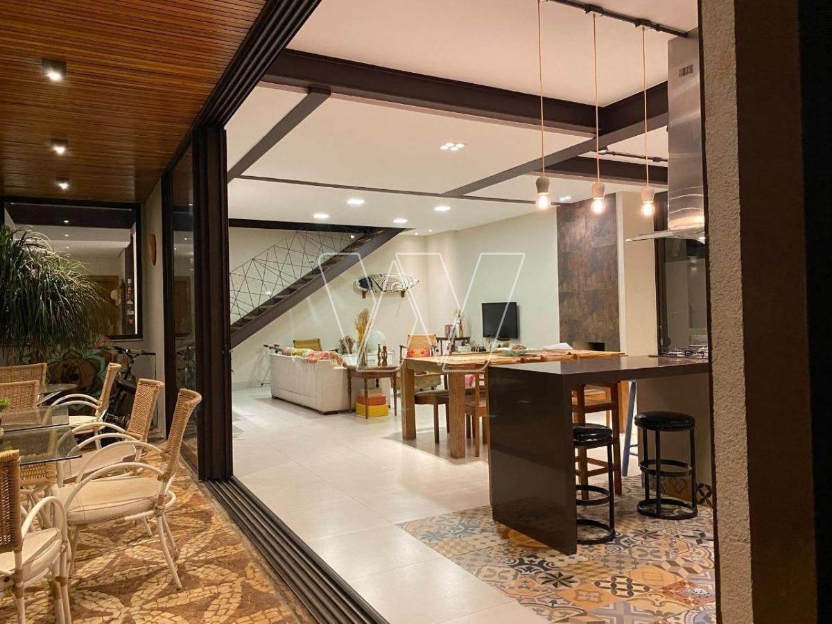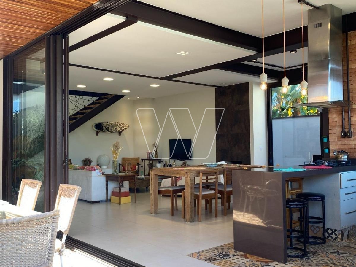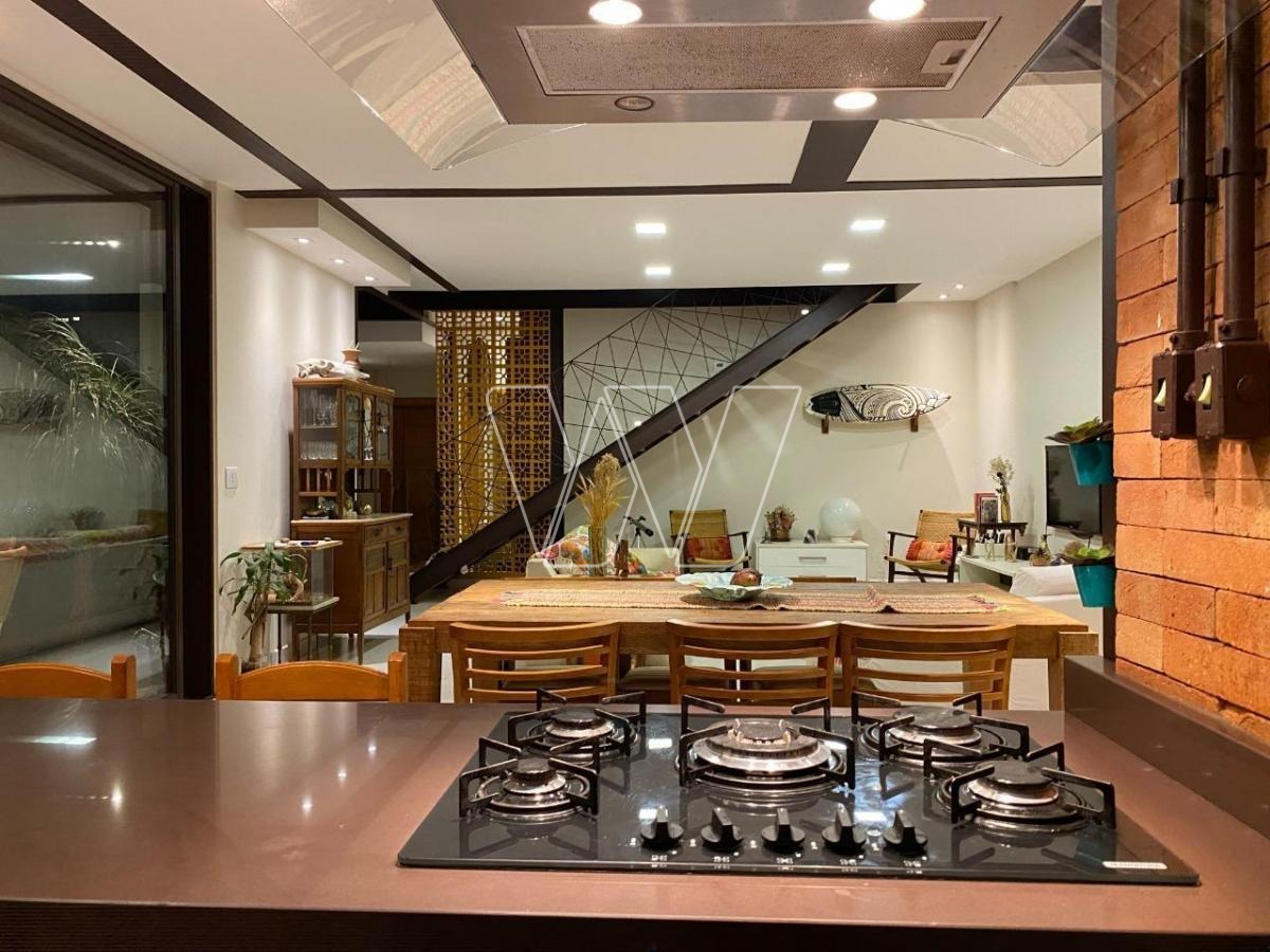 NO PISO TÉRREO: grande área livre composta pela sala de estar, jantar e TV. Com lareira e jardim de inverno.