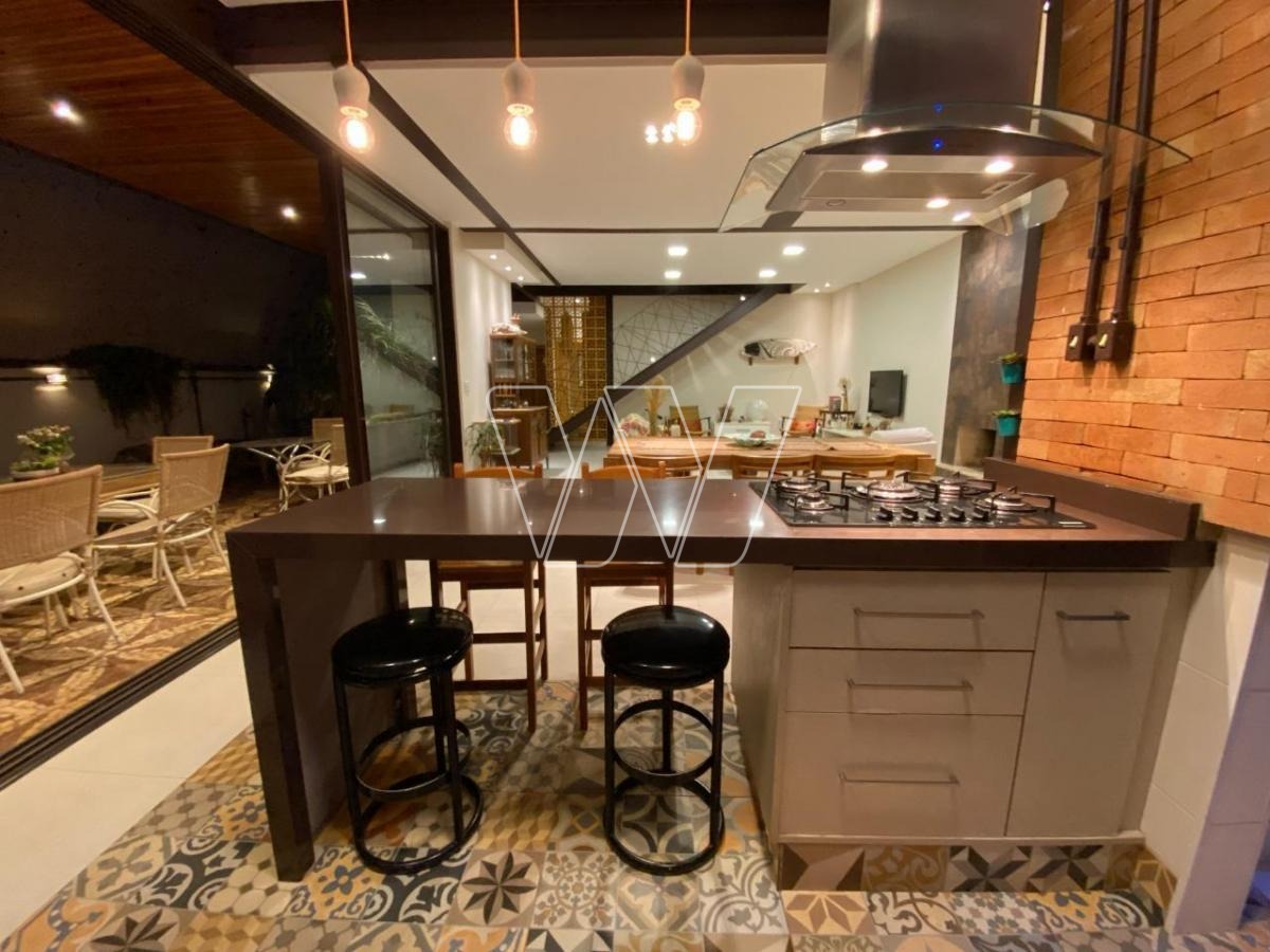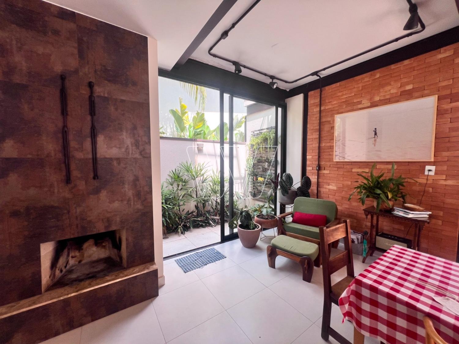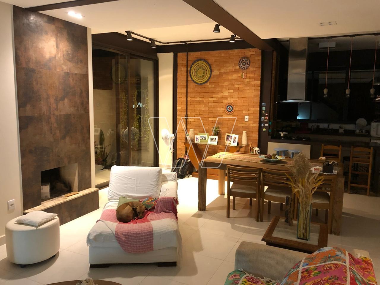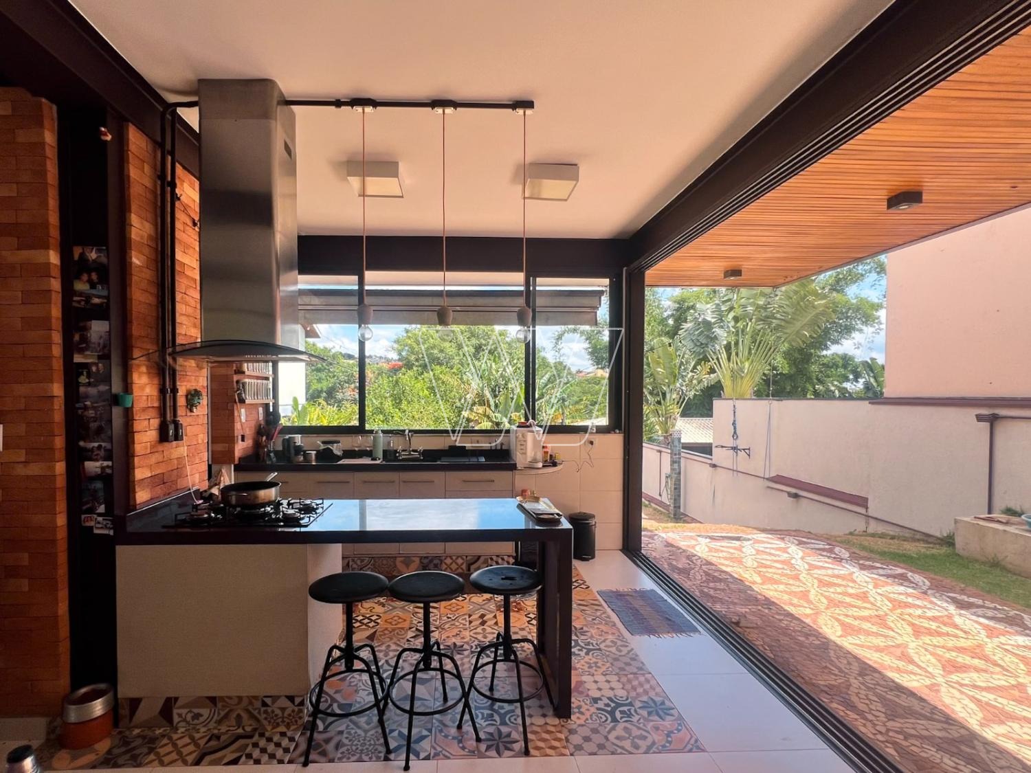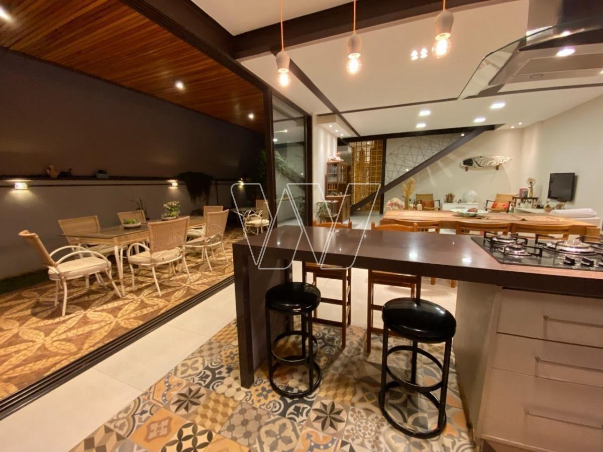 NO PISO TÉRREO: grande área livre composta pela sala de estar, jantar e TV. Com lareira e jardim de inverno.