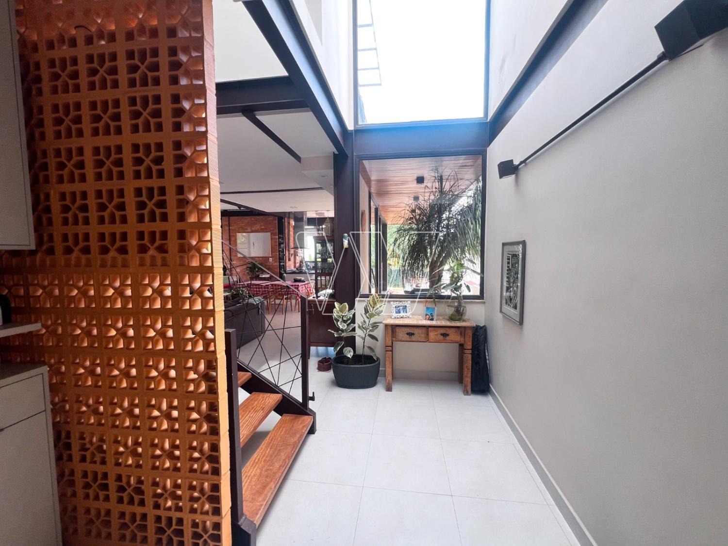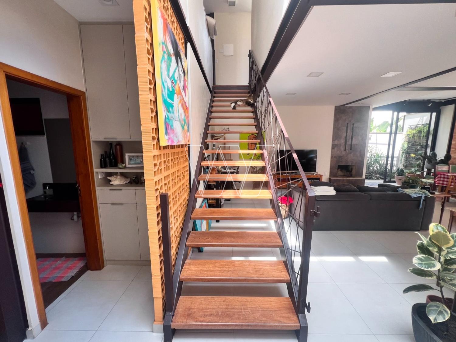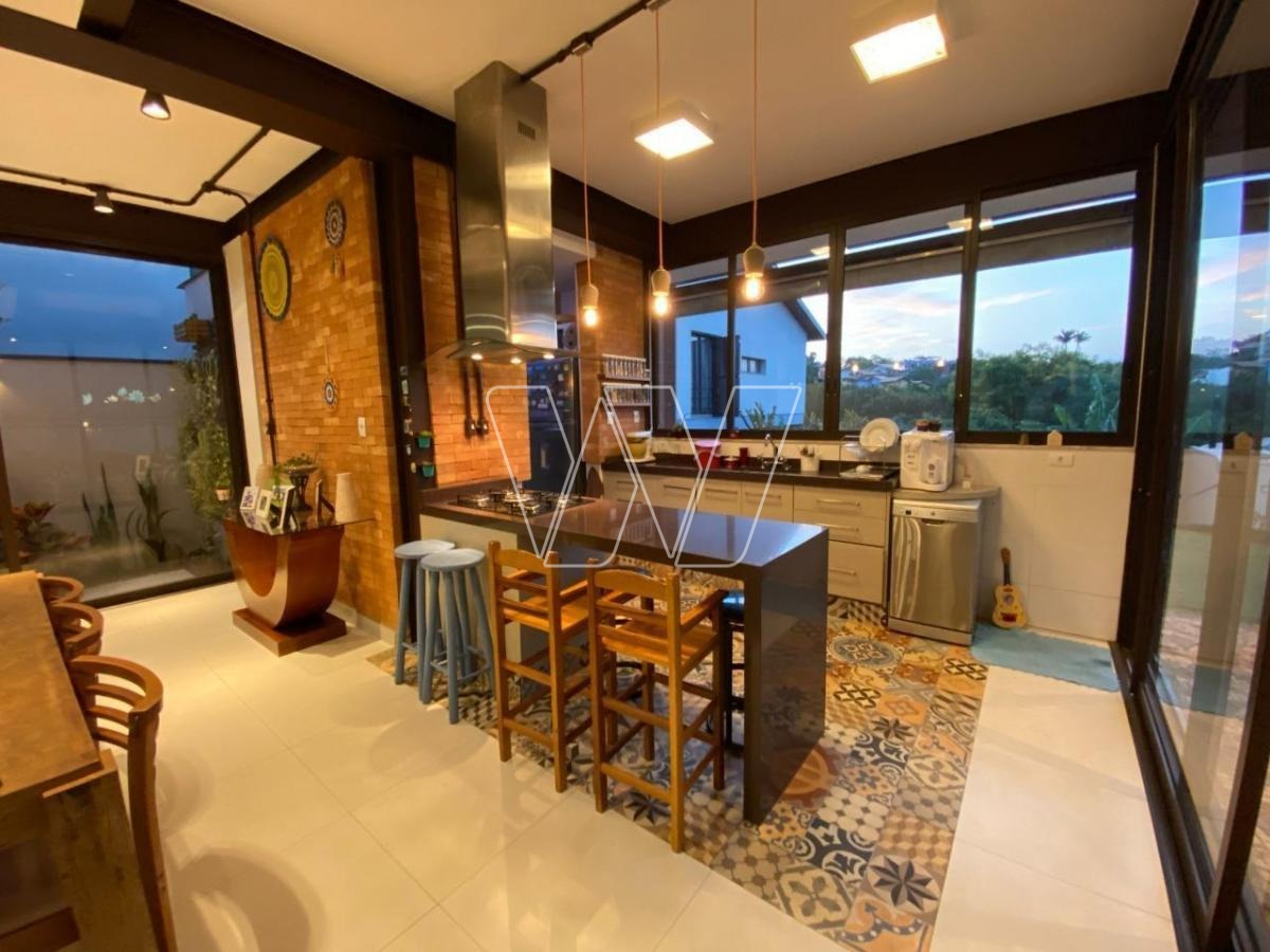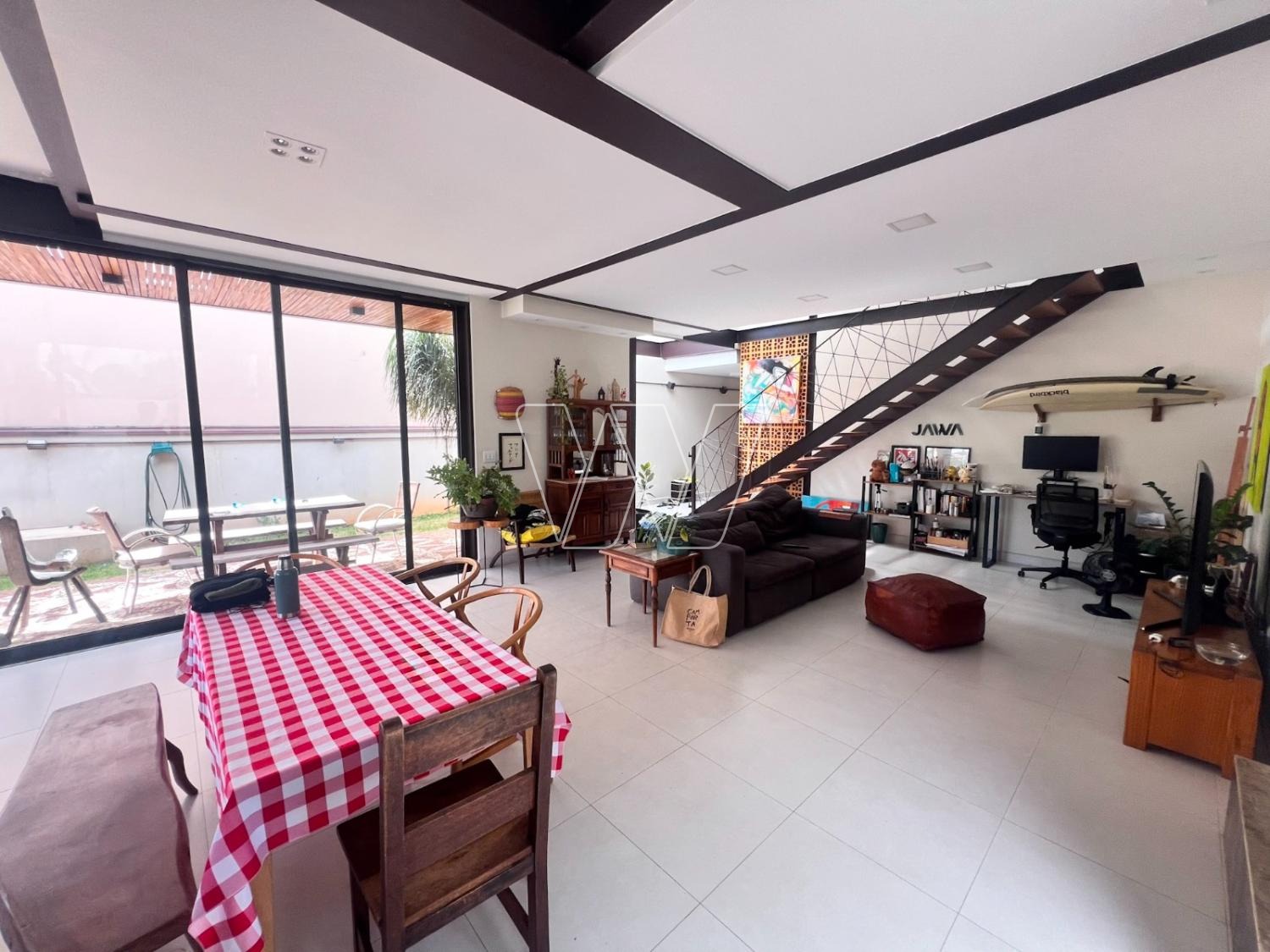 NO PISO TÉRREO: grande área livre composta pela sala de estar, jantar e TV. Com lareira e jardim de inverno.