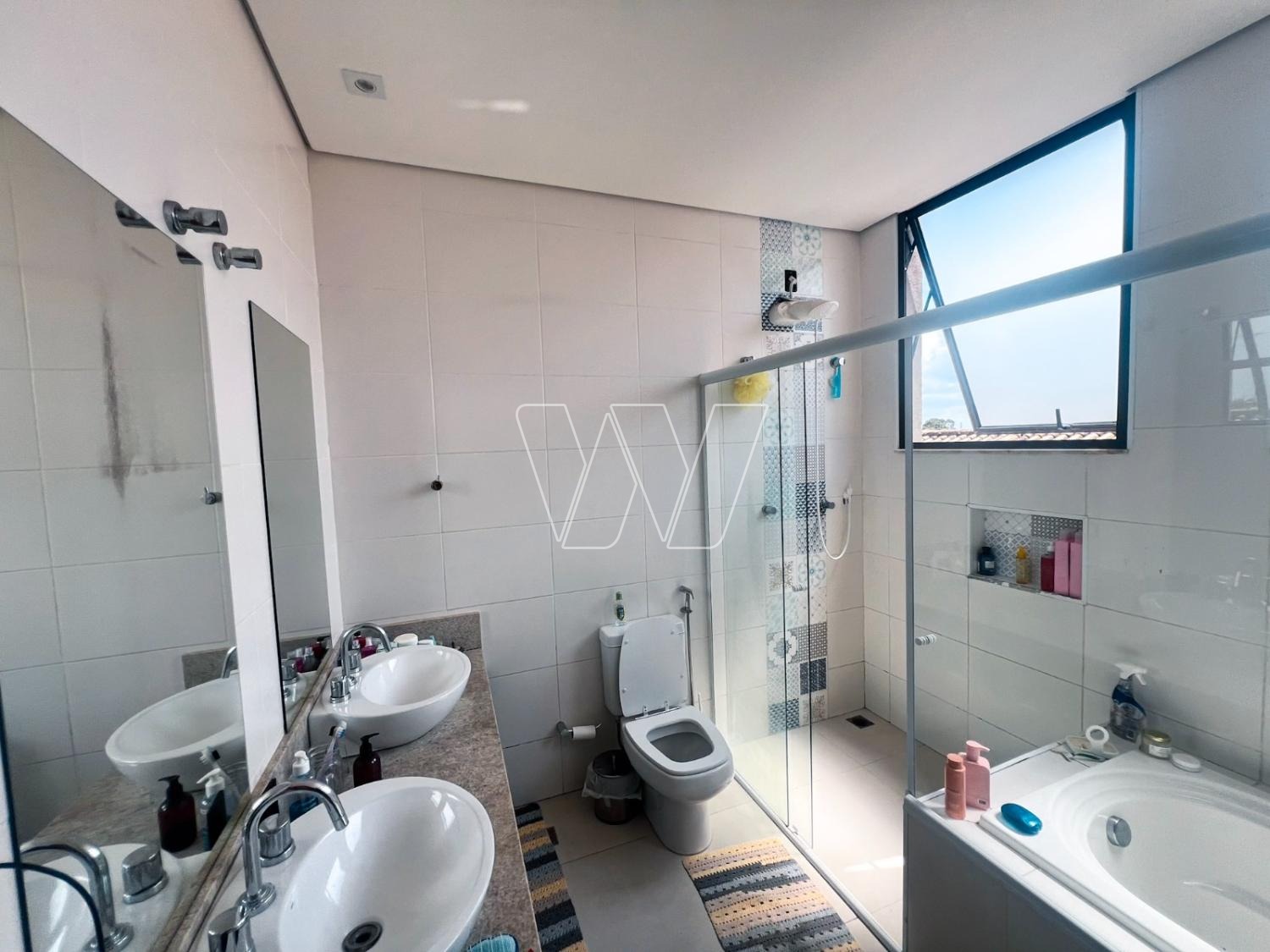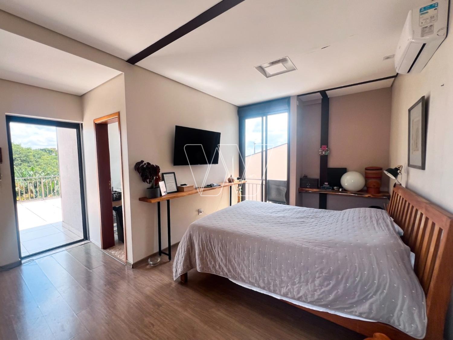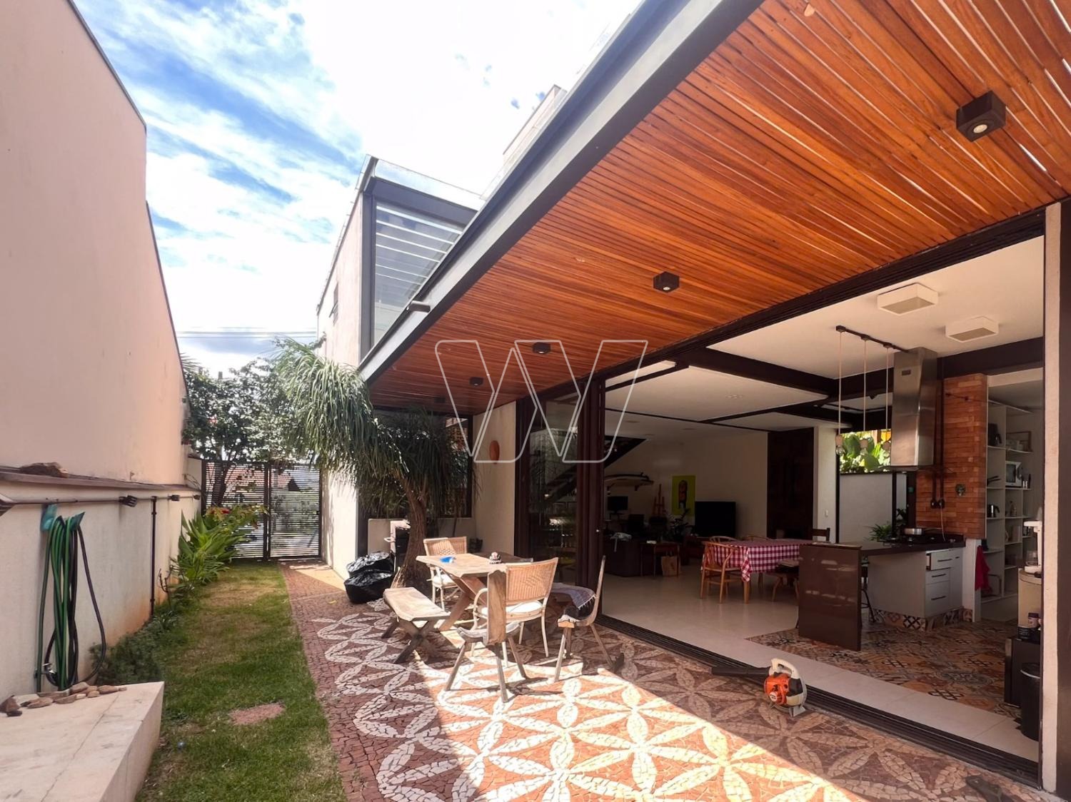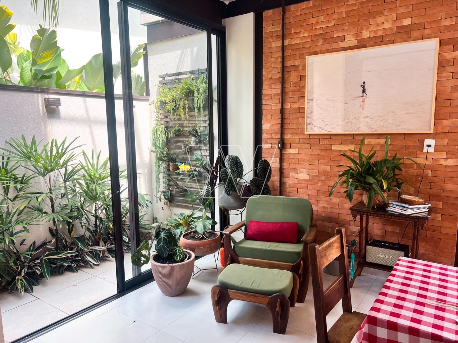 NO PISO TÉRREO: grande área livre composta pela sala de estar, jantar e TV. Com lareira e jardim de inverno.