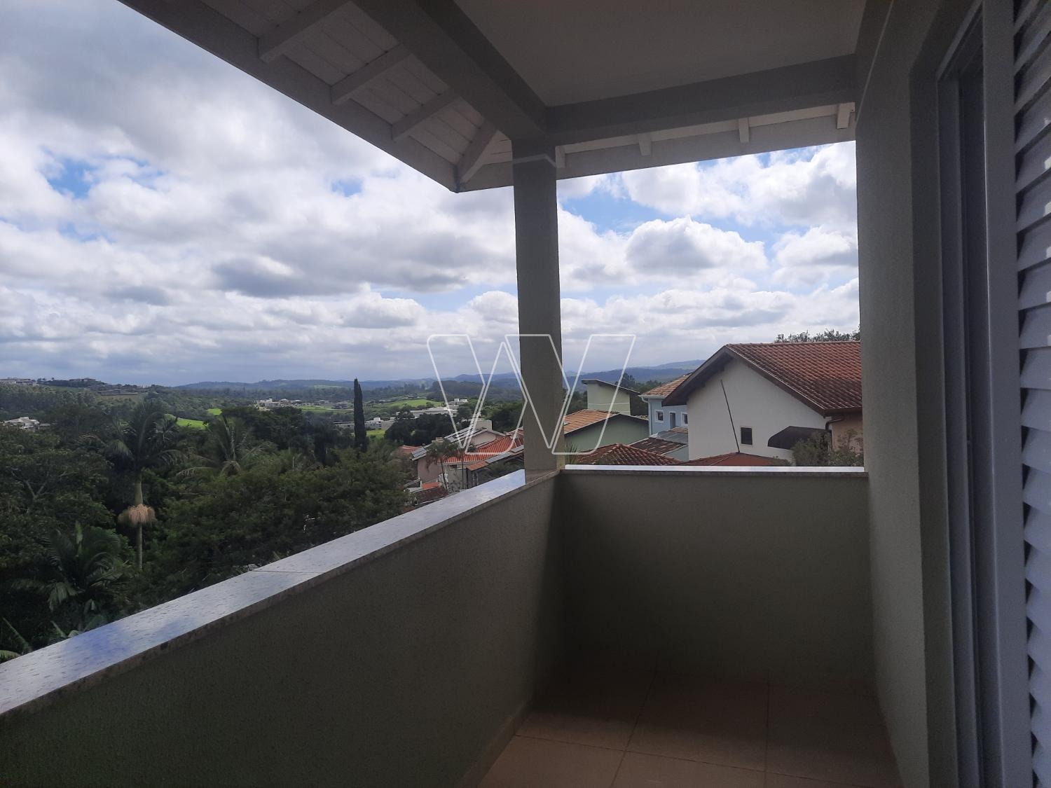 NO PISO SUPERIOR: hall das suites no topo da escada, três suites todas com sacadas e vistas permanentes e escritório com estantes e mesa. A suite master conta com banheira de hidromassagem e closet.