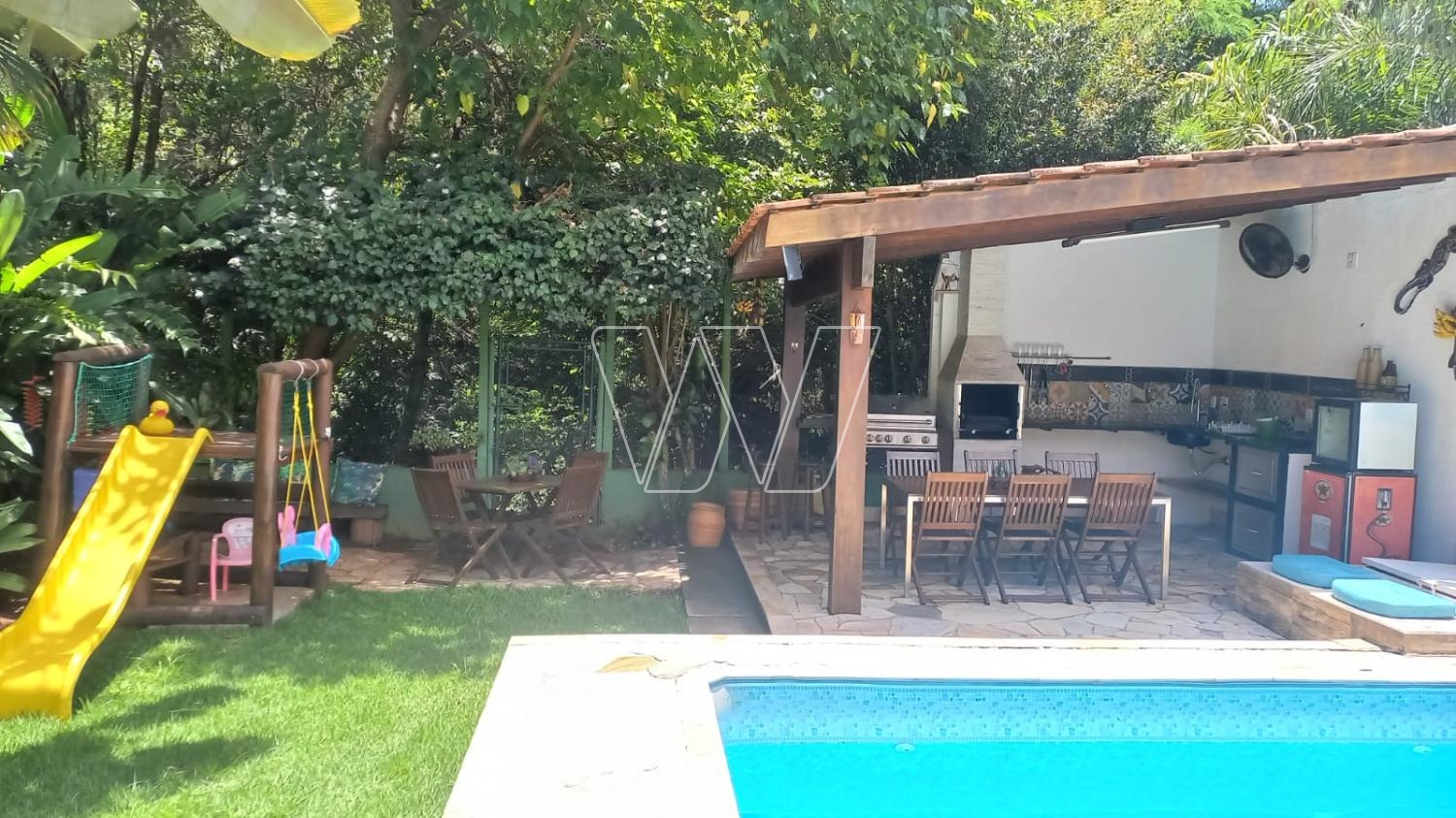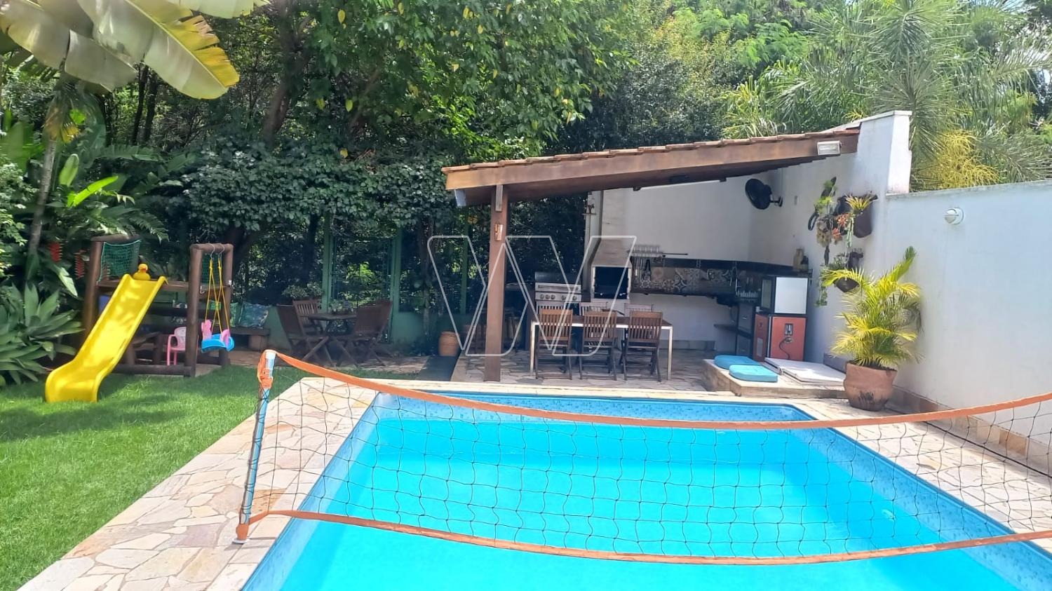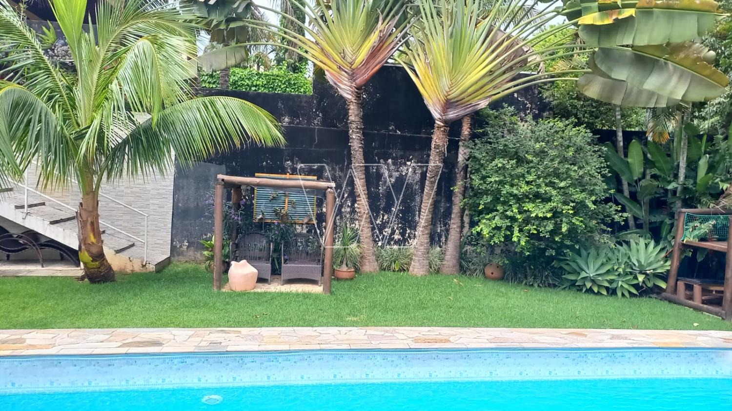 Área Gourmet com churrasqueira à carvão e churrasqueira à gás, Play Ground, Pergolato, Piscina 7x4, com biriball, Aro de basquete, Quarto e Banheiro área externa, Depósito para equipamento de jardim, Depósito para material de obra, Armário para ferramentas, Área de reserva com árvores frutíferas (jaboticaba, coqueiro, pitanga, goiaba, abacate, banana, fruta do conde, limão e pera), Placas Fotovoltaico (antes da taxa federal).