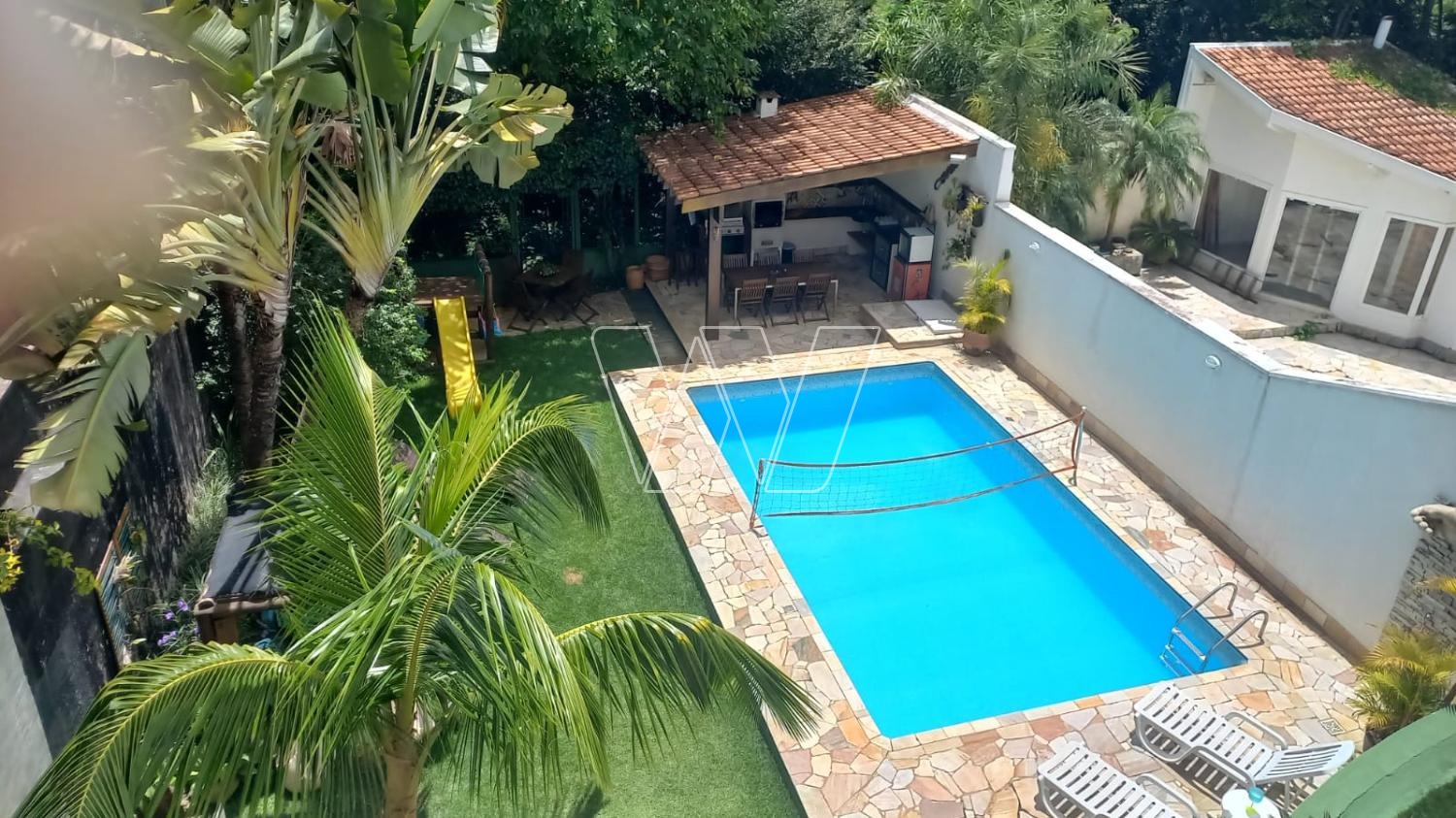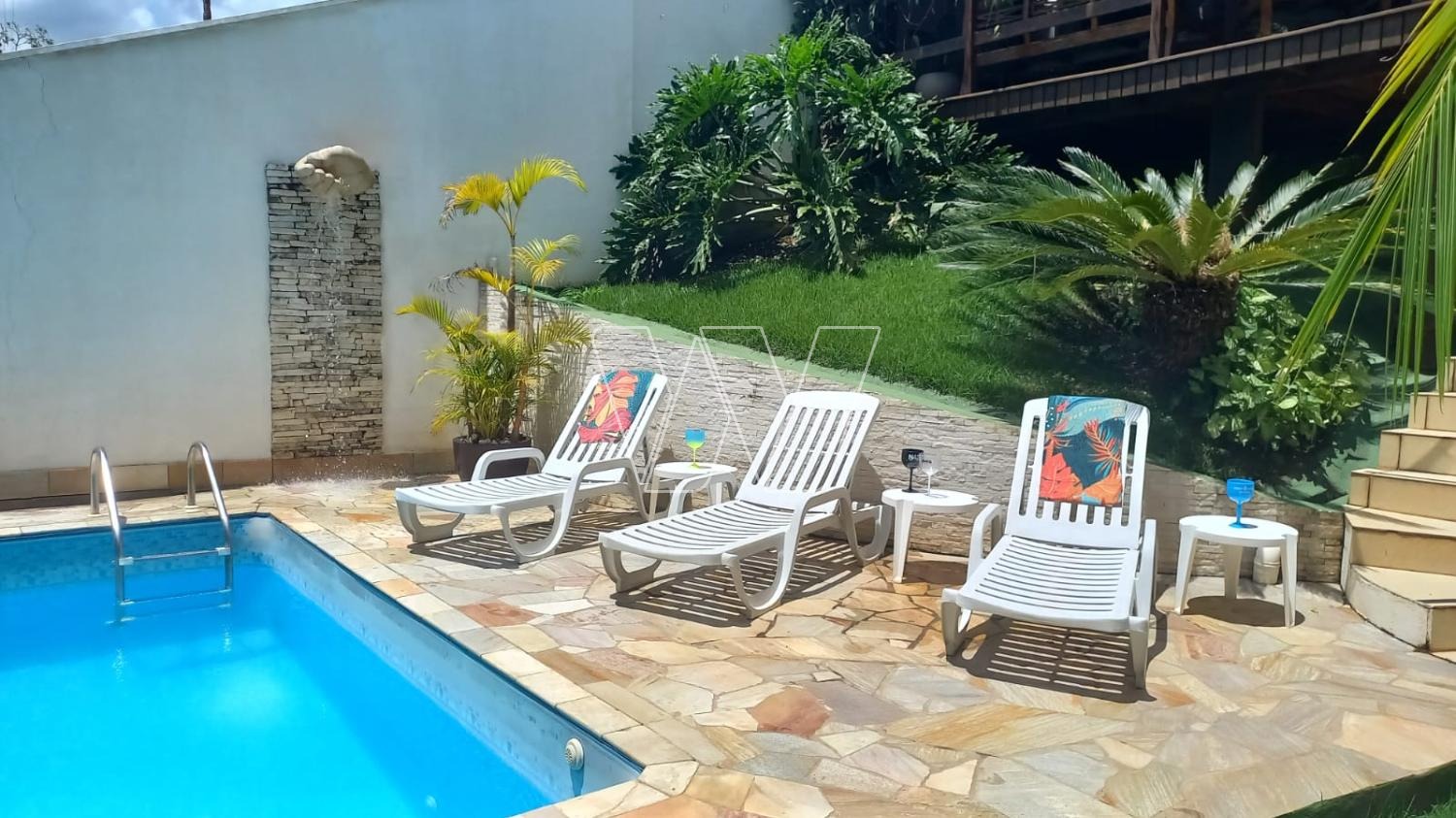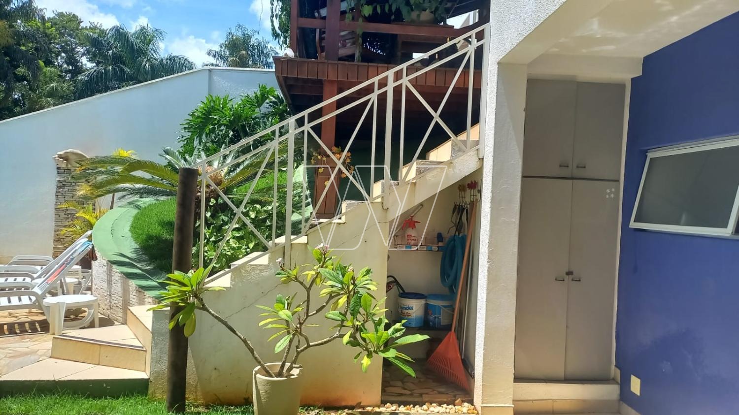 Área Gourmet com churrasqueira à carvão e churrasqueira à gás, Play Ground, Pergolato, Piscina 7x4, com biriball, Aro de basquete, Quarto e Banheiro área externa, Depósito para equipamento de jardim, Depósito para material de obra, Armário para ferramentas, Área de reserva com árvores frutíferas (jaboticaba, coqueiro, pitanga, goiaba, abacate, banana, fruta do conde, limão e pera), Placas Fotovoltaico (antes da taxa federal).