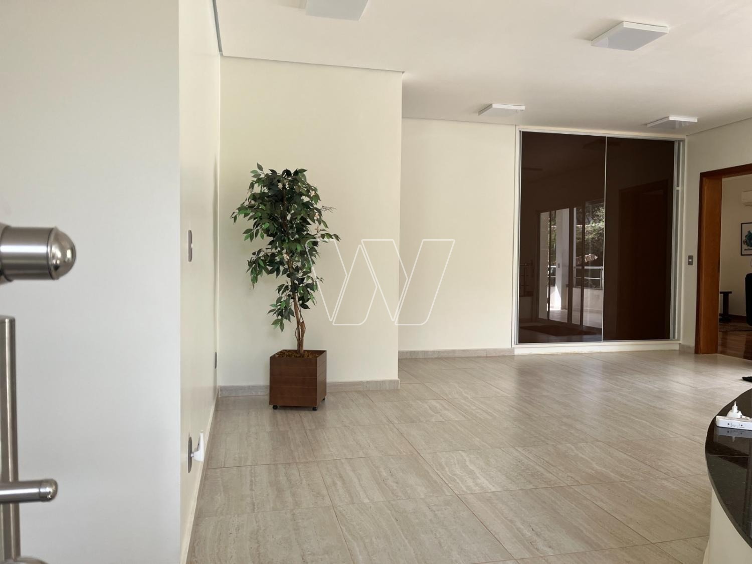 PISO TÉRREO: escritório climatizado e cortina, WC social, amplo living (conceito Open space) com sala de estar com pé direito duplo. Salas de visitas junto à sala de estar com ambientes amplos, projetada para receber sofás e rede de descanso. Sala de jantar com mesa para 8 lugares. Home Theater com 20m2 com Ar Split quente/frio e cortina blackout. Cozinha rica em armários, com ilha central, fogão, bancada em ambos os lados, armários Reflecta. Despensa anexa, lavanderia com armários.