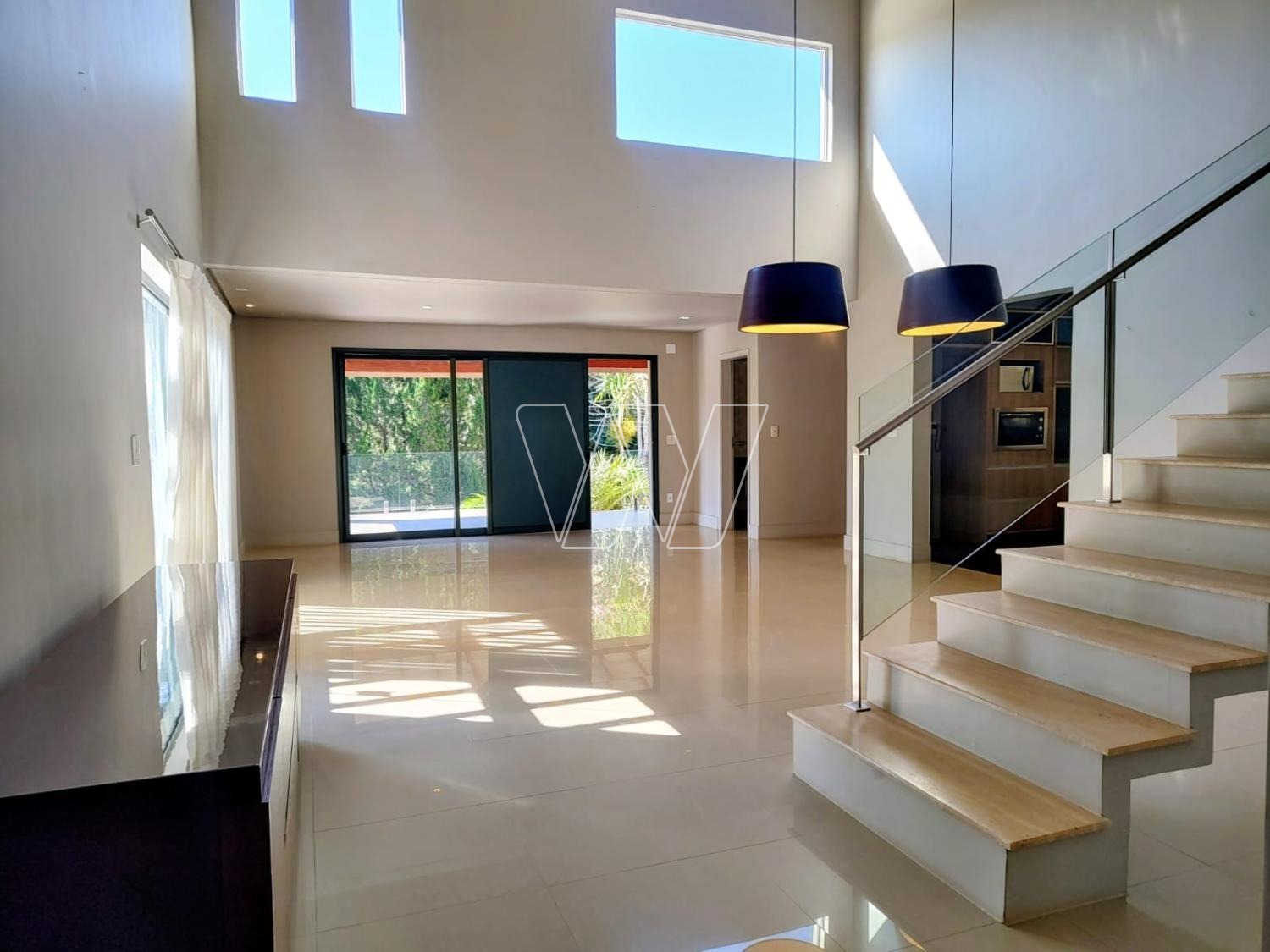 - Salas com pé direito bem alto proporcionando luz natural e excelente ventilação, varanda com linda vista para área de preservação ambiental;