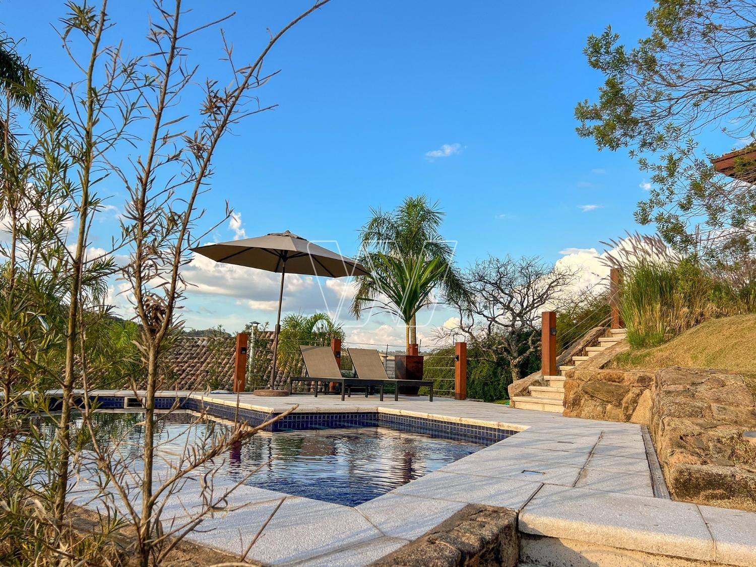 -Piscina com prainha e borda infinita, linda área gourmet, campo de vôlei, pomar com árvores frutíferas e lindo jardim.