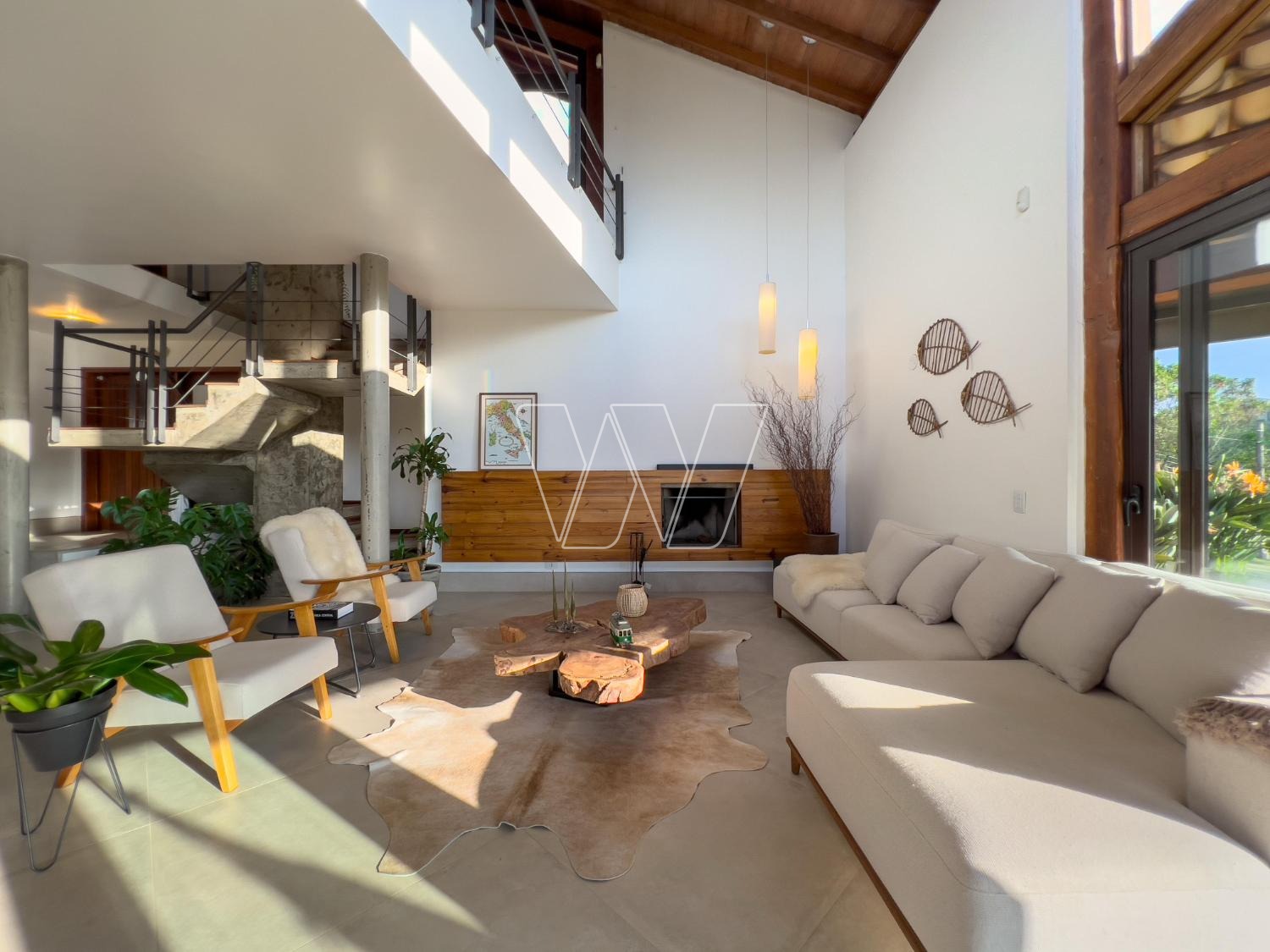- Living amplo com pé direito duplo e lareira, home theater, e integra-se a um espaço gourmet com churrasqueira e sala de vidro, que pode ser uma academia também.