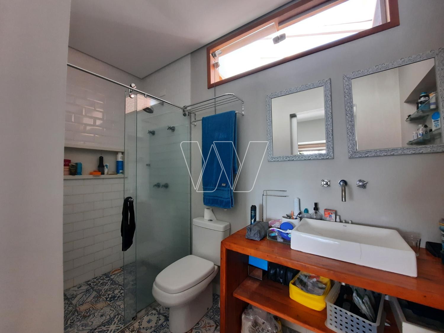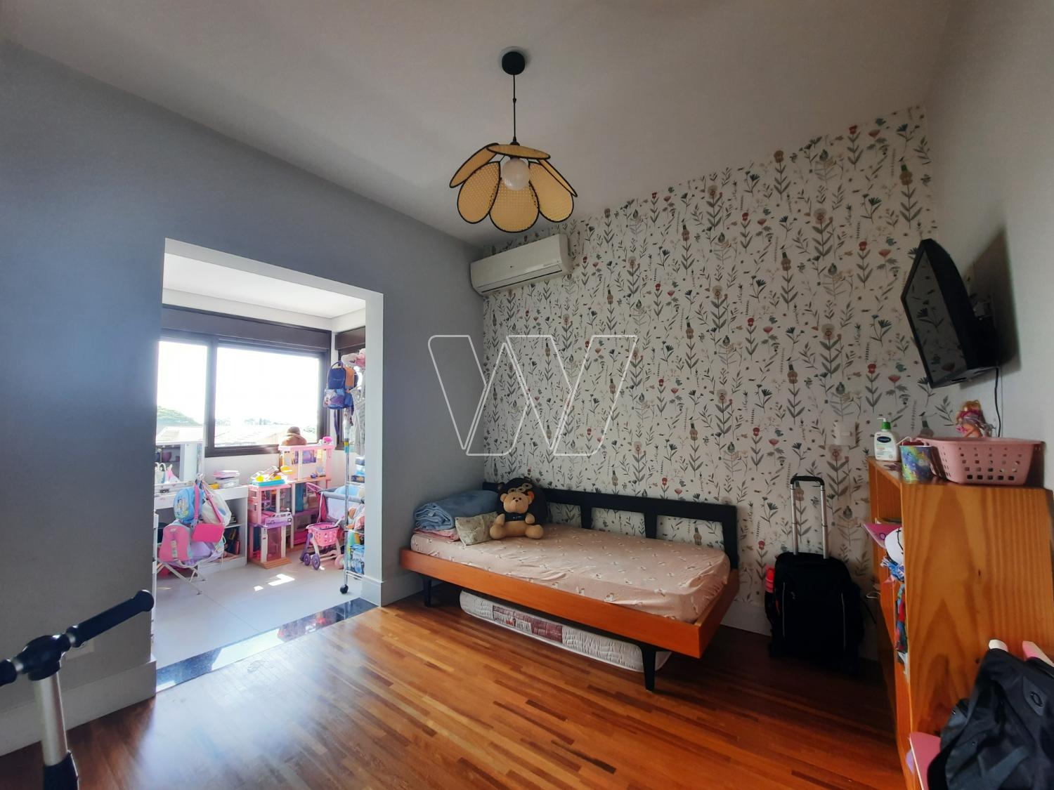 NO PISO TÉRREO: ampla sala conjugada para estar e jantar, iluminada por porta de vidro de correr, para área de luz. Cozinha planejada, corredor com roupeiro, suite master com closet e acesso para sacada com porta de vidro de correr. Mais dois quartos com armários, um deles com salinha anexa e grande janela panorâmica. Todos os quartos com ar-condicionados. Um banheiro social para servir os dois quartos. Todos os banheiros e torneiras alimentados com água quente pelo aquecimento solar central, pressurizado quente/fria.