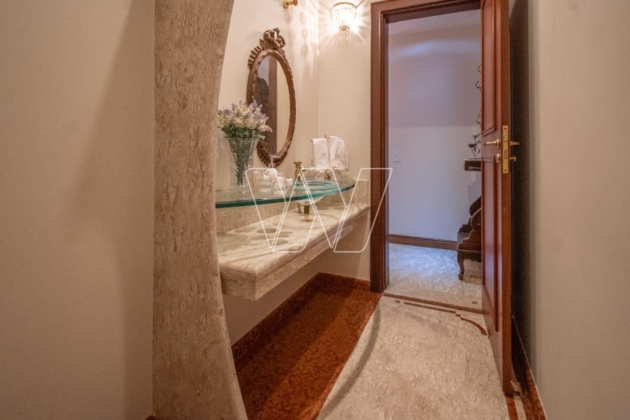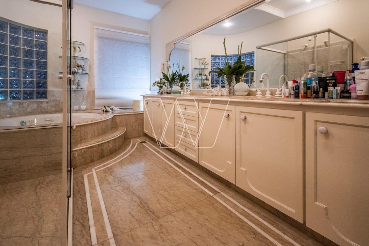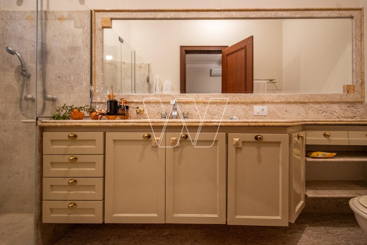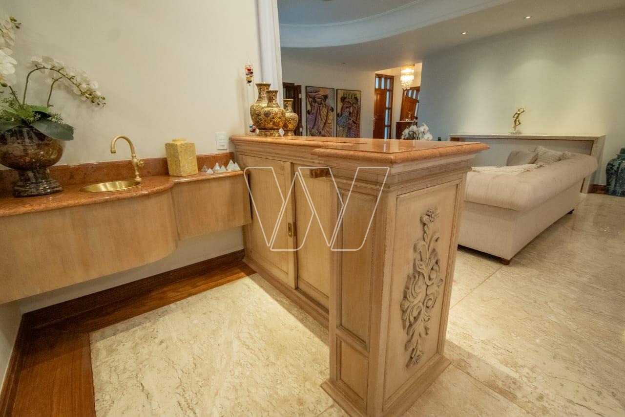 Acabamentos nobres em mármore e madeira, que reforçam o alto padrão da residência.