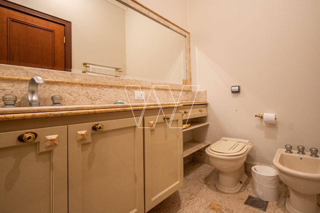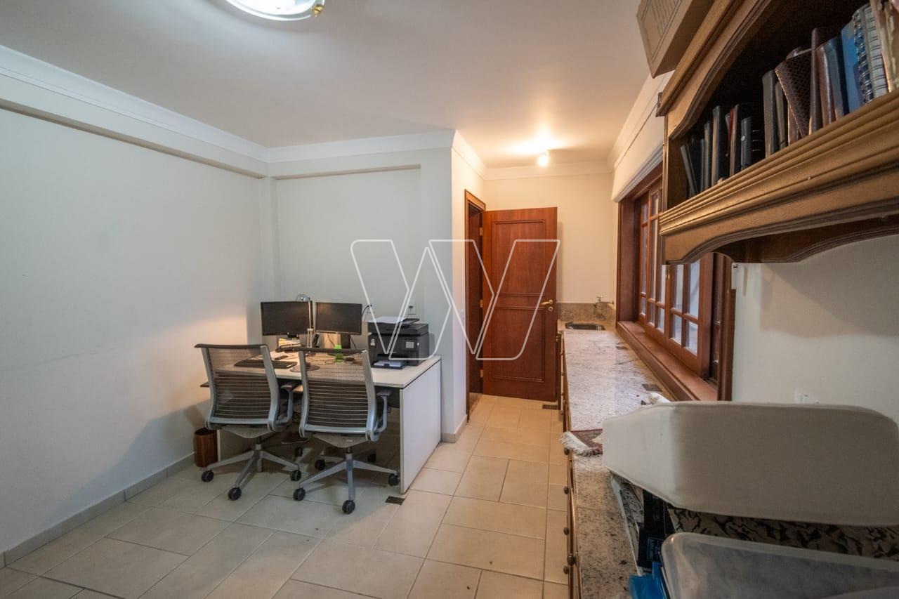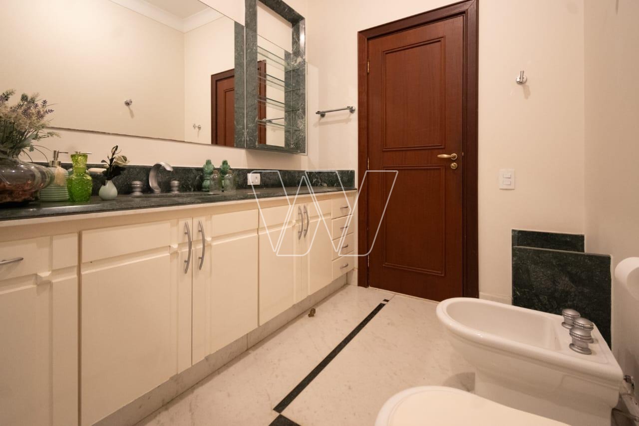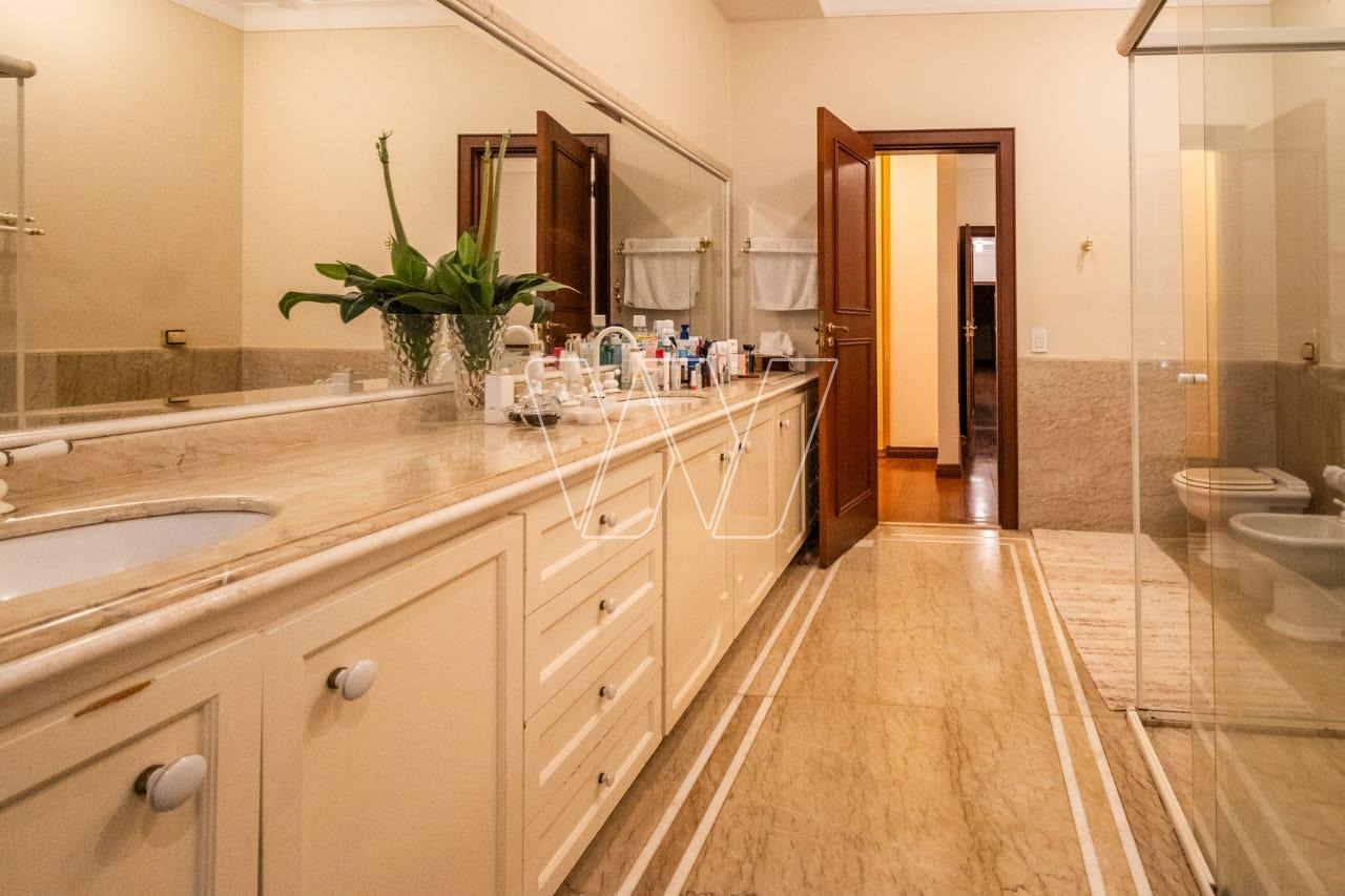 Acabamentos nobres em mármore e madeira, que reforçam o alto padrão da residência.