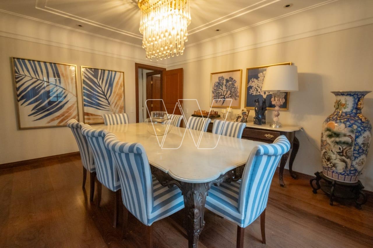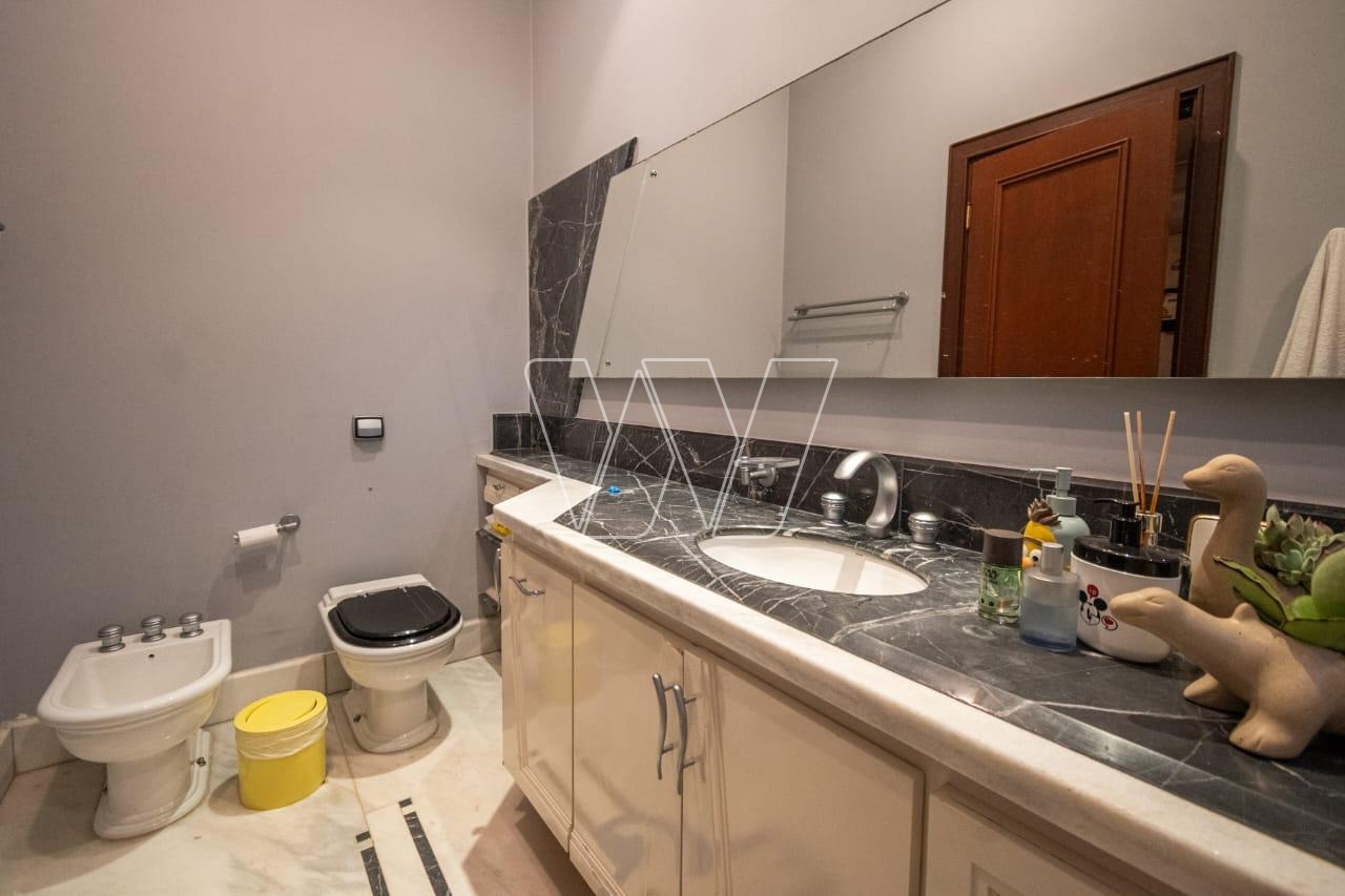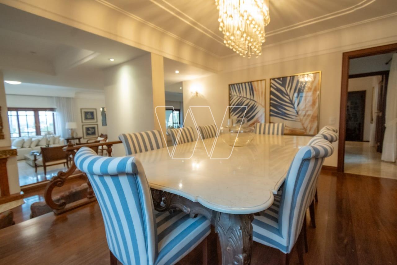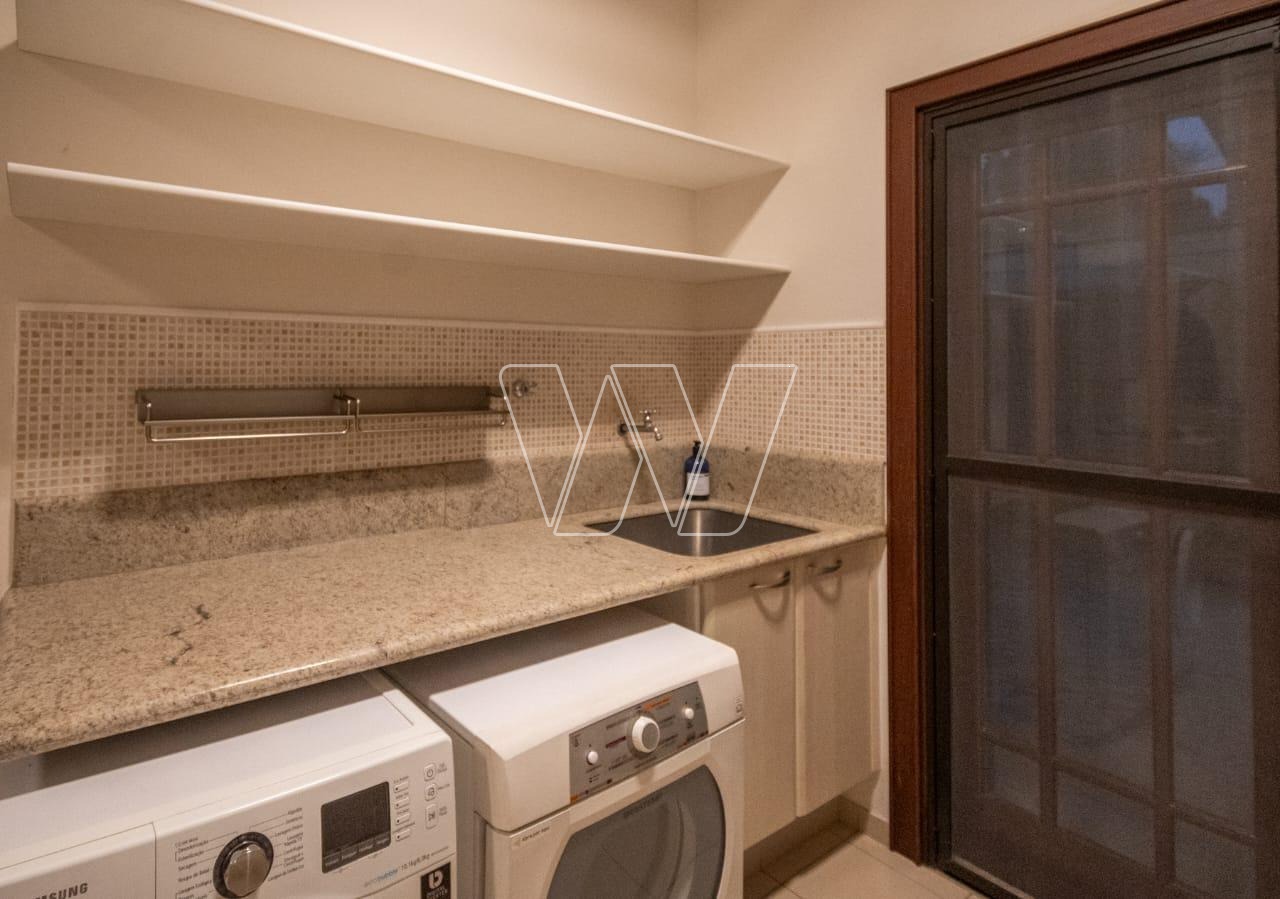 Acabamentos nobres em mármore e madeira, que reforçam o alto padrão da residência.
